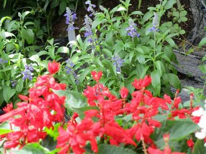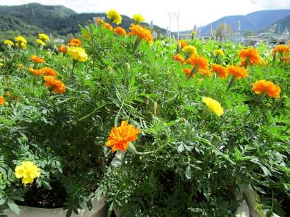 学校の花壇では、暑さに負けず、たくさんの花が咲いています。