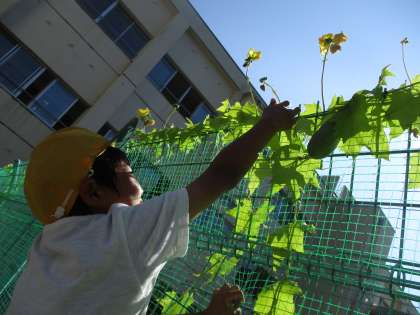 8月20日(木) 4年生 ヘチマのつる迷路をたどって・・・