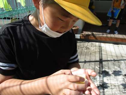 落ちている花に花粉がついているのを見つけた子供もいました。