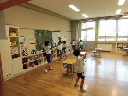 8月20日(木) ラジオ体操 公開日 2020/08/20 更新日 2020/08/20 碧っ子の姿から 今日の運動タイムは、それぞれの教室でラジオ体操を行いました。 来る体育大会に全員がしっかり体操できるように、取り組んでいます。