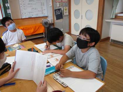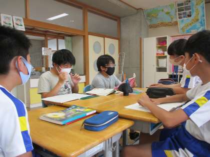 国語科の学習で対話の練習を行いました。議題は「家でペットを飼うとしたら、犬と猫のどちらがよいか」です。それぞれの立場で進める理由を多く挙げて互いの意見のよいところや問題点を比べました。司会者は、より説得力があったかを考えて判定しましたが、どちらもよい意見で迷ったようです。