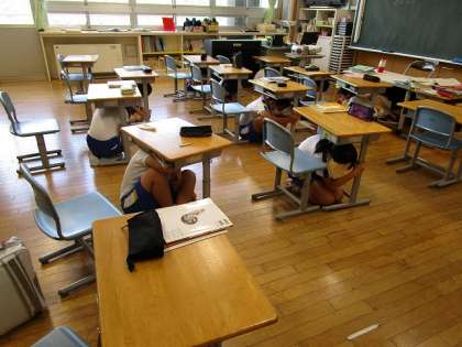 自分の命は自分で守るために、各教室で地震における避難訓練を行いました。