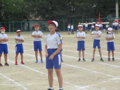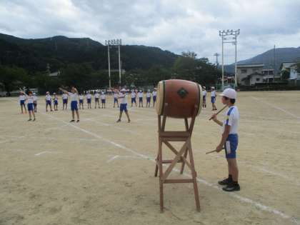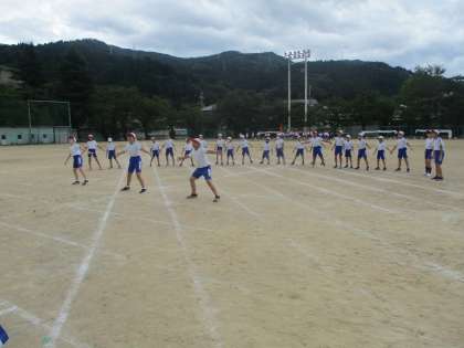 小中合同体育大会の応援の練習が始まりました。今日はグラウンドで初めて通して練習しました。