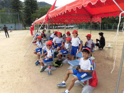 競技に参加した後は、団席で消毒を忘れず行っています。