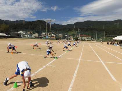 4,5,6年生が参加する加技走「ニレミドピック2020」は、ゴールまでの道のりに、「ゴムひも」や「ソフトボールスプーン乗せ競技」など、いろいろな試練が待ち構えています。