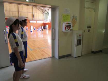 大きな声がどこまで届くか、格技室の上の体育館前で聞いています。