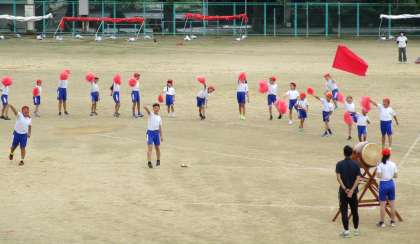 よりよい応援にしようと6年生が中心となって下級生に声をかけています。