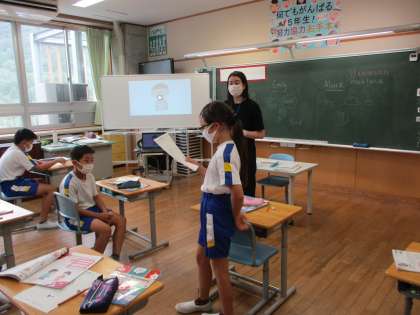 今日は、「He can〜」「She can〜」の表現を使って自分の家族や友達を紹介しました。ALTの先生が質問をしてその質問にもしっかり答えることができました。