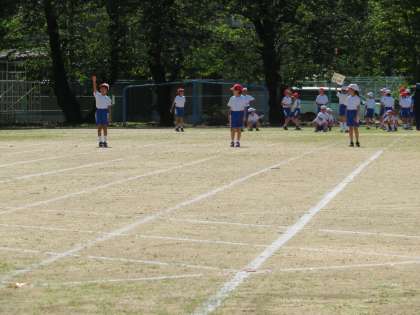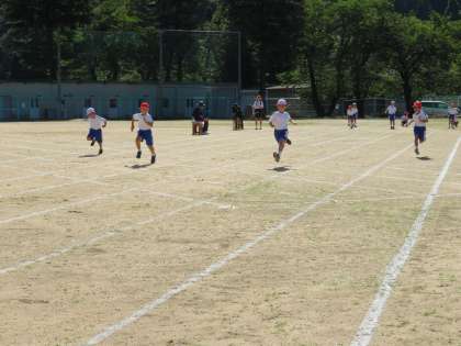 プログラム2番は、1,2年生の50メートル走です。
