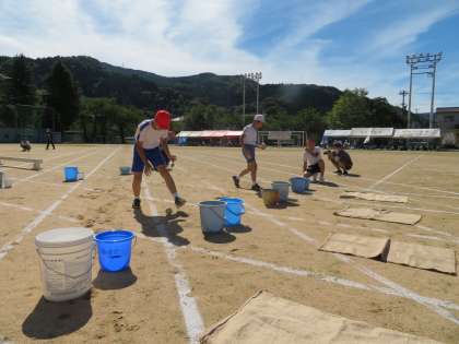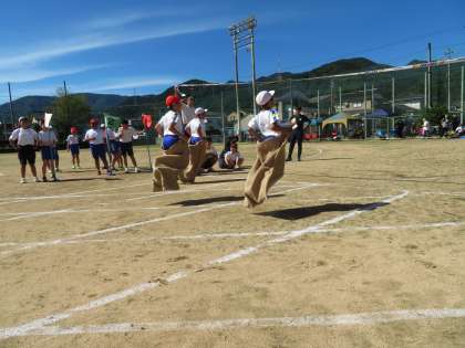 最後は、麻袋に両足を入れ、ぴょんぴょんジャンプしながらゴール。
