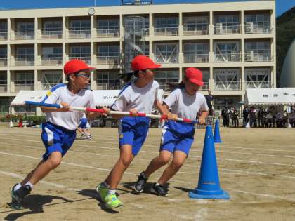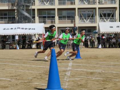 途中、カラーコーンを回り過ぎたり、中学生が回るコーンまで進んでしまったり、ハプニングもありましたが、みんな拍手をしながら応援しました。