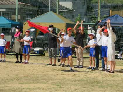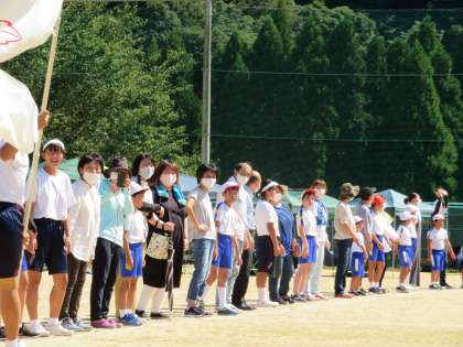 今年度は、手はつなぎませんでしたが、みんなでグラウンドに円をつくり、声や手でウェーブをつくりました。