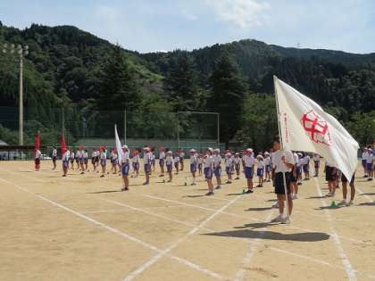 「全校で協力し笑顔あふれる楽しい体育大会にしよう」のテーマ通りの