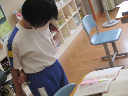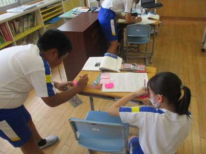 国語科では「やまなし」の学習を進めています。宮沢賢治はどうして「やまなし」という題名にしたのか、またその思いについてまとめたことをみんなで読み合いました。宮沢賢治の生い立ちや登場人物のカニの目線から考えるなど、さまざまな考えが出てきました。