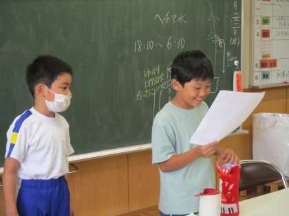 家で植えたヘチマで、ヘチマ水を取ってきてくれた子や、ヘチマタワシを作ってきてくれた子供がいました。