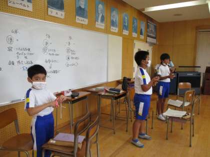 今日の音楽の時間に「陽気な船長」を合奏しました。