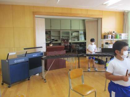 音楽の時間に器楽合奏をしています。