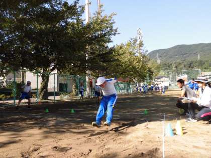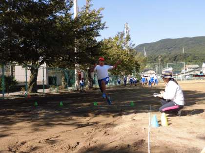 5,6年生は、さわやかな秋晴れのもと、走り幅跳びの練習をしています。