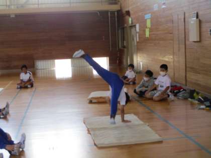 その後に、何人かの子供が側方倒立回転のお手本を見せてくれました。