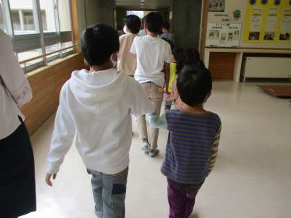 来年度入学予定の年長児11名が本校を訪問しました。5年生の子供たちは玄関や多目的室、教室等校舎を案内しました。「ここでお勉強をするよ。」「トイレは大丈夫?」と優しく声を掛けました。子供たちは年長児と目線を合わせることやゆっくりはっきり話すことを意識していたようです。