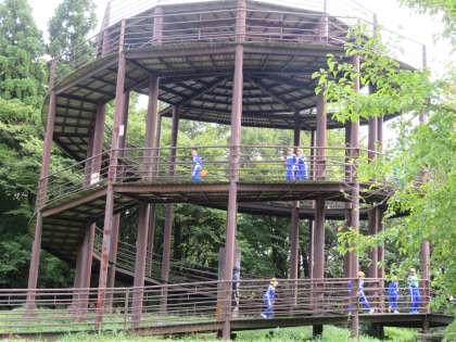 班ごとに展望台の上で写真を撮りました。