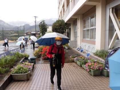 今日は、朝から雨です。 気温も低く、雨の中の登校は、たいへんそうです。