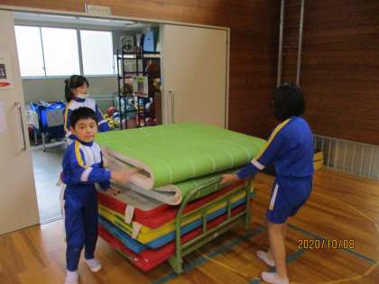 10月8日(木) 3、4年生 進んで準備 公開日 2020/10/08 更新日 2020/10/08 4年生の部屋 今日も体育でマット運動をしました。 開始3分前から進んでマットの準備をしてくれたり、体育館の窓開けをしてくれたりする子供がいました。みんなのためにありがとう。 今日は背支持倒立をしました。 この技が、壁倒立につながっていきます。 今後も、色々な技にチャレンジしてみましょう。