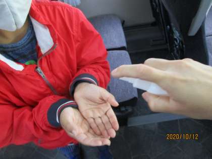 バスに乗る時や入館する時等に消毒をしたり、座席に座る時に十分に間隔をあけたりと、感染症対策もばっちりです。