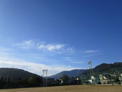 子供たちが登校してくる頃には、雲がなくなり、きれいな青空が広がってきました。