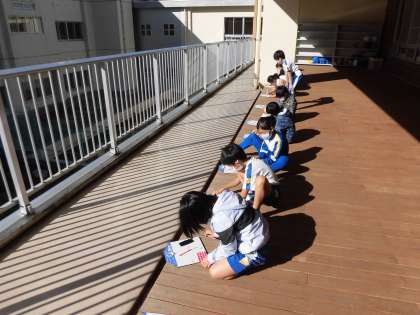 3年生は、理科の学習で太陽やかげの動きについて学習しています。