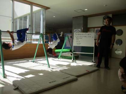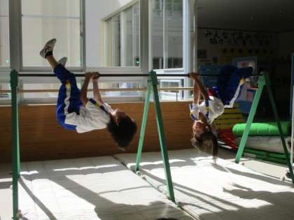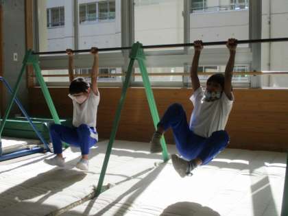 10月20日(火) 1・2年生 鉄棒を使って動物になろう 公開日 2020/10/20 更新日 2020/10/20 1年生の部屋 今日の体育では、鉄棒を使った運動に挑戦しました。 鉄棒を使って、猿やコウモリ、ナマケモノに変身し、楽しく学習しました。