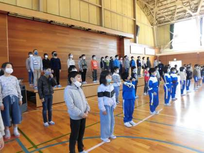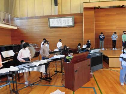 10月21日(水) 心を一つに!全校音楽 公開日 2020/10/21 更新日 2020/10/21 碧っ子の姿から 1限は、全校音楽です。 学習発表会での発表に向けて、体育館で練習しました。 1曲目は、体を動かしノリノリで歌う「ダビデュビ、デュビデュバ」、2曲目は、56年生の合奏と1〜4年生の合唱による「カントリーロード」、そして最後は、みんなでしっとりと歌い上げる「With you smile」です。 10月31日(土)の発表が楽しみです。