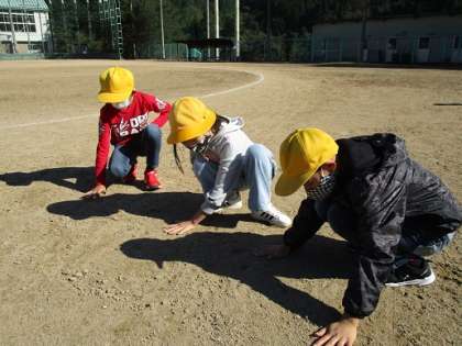 10月21日(水) 3年生 理科「太陽の光を調べよう」 公開日 2020/10/21 更新日 2020/10/21 3年生の部屋 理科「太陽の光を調べよう」の学習では、日なたと日かげの様子を観察します。 今日は、とてもよいお天気だったので、みんなでグラウンドへ出ました。 地面に手を当てて、「日かげは冷たいね」「日なたは少し温かいよ」と友達と一緒に話をしながら調べていました。