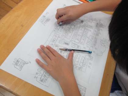 見付けた工夫を集めて、自分の理想のスーパーマーケットを描きました。