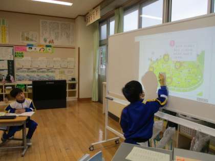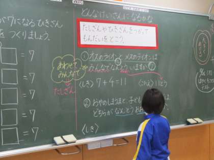 算数の学習では、絵を見てそこから分かったことを基に式を作っています。