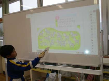 「”どちらが”の部分も答えないとだめだよ」など、子供たちどうしで声を掛け合って問題を解いていきます。