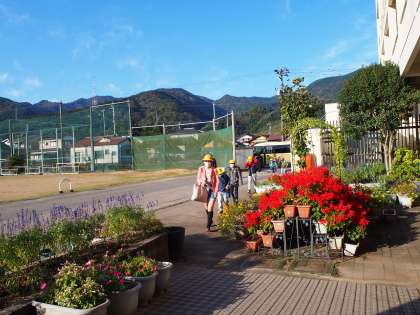 校庭のサクラや周りの山の木々が、少しずつ色づき始めています。