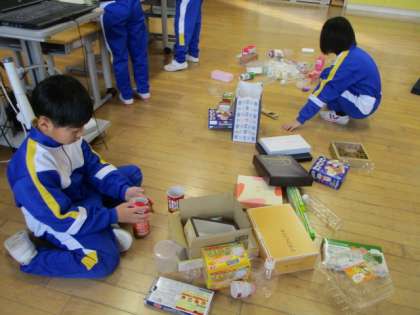 算数の学習では、いろいろな形の立体を使って動物やロボットを作っています。