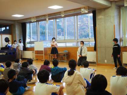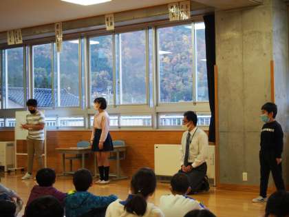 手洗いやハンカチで手を拭くことの大切さについて発表しました。