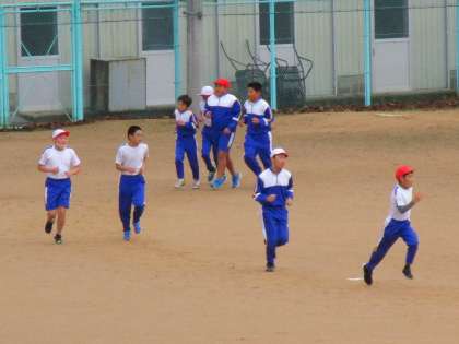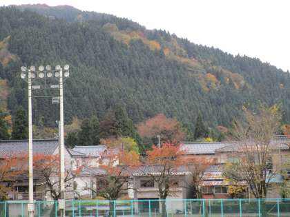 陽があたると、グラウンドの紅葉した木々がよりいっそうきれいです。