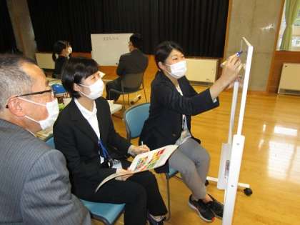 富山国際大学より松山友之先生に来ていただき、SDGs-ESDに関する研修会を行いました。SDGs、ESDについて学んだり、実際の取り組みについて話を聞いたりしました。