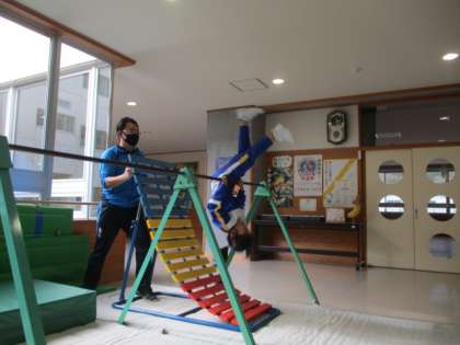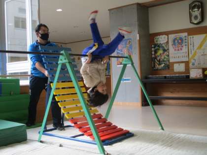 1・2年生は、体育の時間に鉄棒に取り組んでいます。