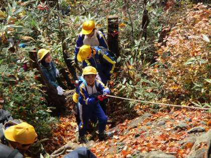 つらい道のりも、班の友達が一緒なら楽しいですね。