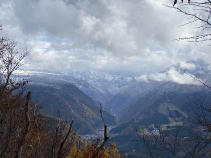 遠くの山には雪が積もっていました。