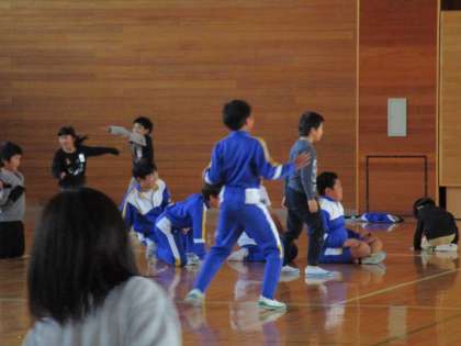 体育館では、ドッジボールをしていました。