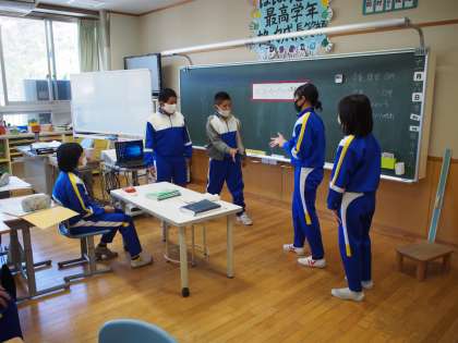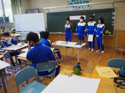 6年生の総合では、地域に住んでおられるお年寄りの交流会「ナゴナール」での交流の仕方について、意見を出し合い話し合いました。音楽で学んだ歌ってダンスをしながら行う「じゃんけんゲーム」について実際にやってみて、改善点を出し合っていました。交流会が楽しみです!