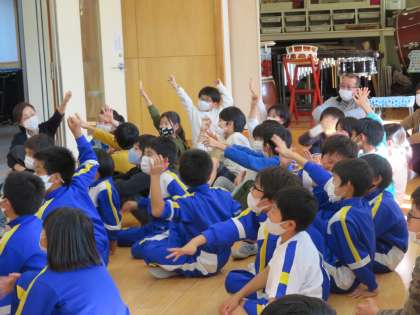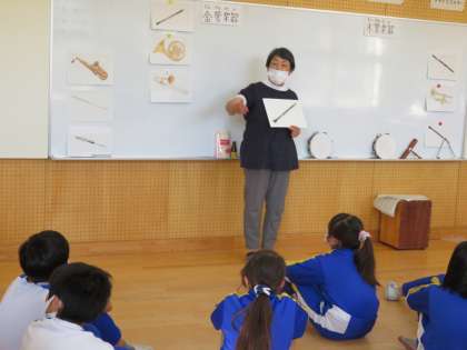 楽器の名前当てでは、3・4年生の時に学習した5・6年生が活躍をしていました。
