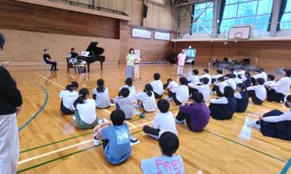 今日は、東京佼成オーケストラの方が来校され、5・6年生は楡原中学校の1〜3年生とともにワークショップに参加しました。前半は手拍子や歌の練習を行い、後半は演奏を聴かせていただきました。貴重な体験となりました。