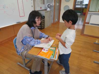 子供たちは自分が書いた文字を授業担当者に見せ、うれしそうでした。