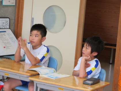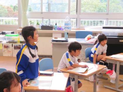 今日から、新しい単元「くじらぐも」の学習に入りました。初めて読んだ感想を一生懸命伝え合う1年生です。